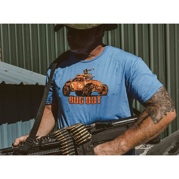 One of the most comfortable t-shirts around, the VIKTOS Men's Big Time Bug Out Tee is made of ring-spun 52% cotton and 48% polyester material. Designed and developed by U.S. veterans, this men's tee is comfortable casual wear you can have in your collection of favorite t-shirts. The Big Time Bug Out Tee for men features short sleeves and a unique screen-printed graphic on the front. Lightweight and breathable, this cooling T-Shirt is specially designed for shooters, who can spend the whole day outdoors, and also for men leading an active lifestyle. It is perfect for everyday wear and outdoor activities, such as shooting, hunting, jogging, camping, or hiking. It goes perfectly with jeans, shorts, and shooting clothes. Be sure this breathable short sleeve shirt will reliably protect you from the sun and provide comfort and coolness for the whole day of wearing.